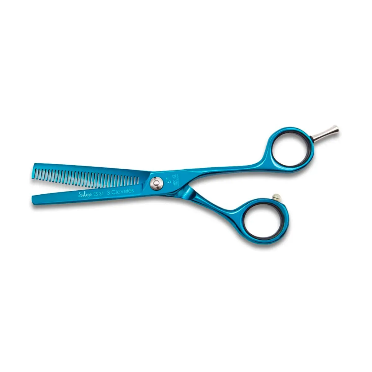 Al trabajar, la sensación de control que aporta 3 Claveles Tijera Esculpir Silex Tin ES31 6" resulta evidente desde las primeras pasadas. La tijera se siente equilibrada en la mano, con un punto de gravedad que permite movimientos precisos sin esfuerzo excesivo. El corte es suave y sin tirones, lo que facilita ejecutar técnicas de texturizado sin dañar la fibra capilar.