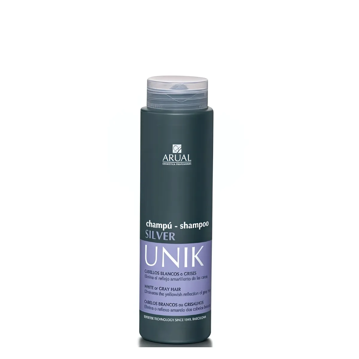 Arual Champú Silver Unik es un champú específico diseñado para cabellos claros, medios y con canas que buscan un tono más uniforme y un brillo renovado sin complejidad. Su fórmula combina pigmentos violetas con agentes acondicionadores y un pH equilibrado para un uso frecuente, ofreciendo una experiencia cómoda en la ducha y resultados controlados que se notan en la textura y el tacto del cabello.