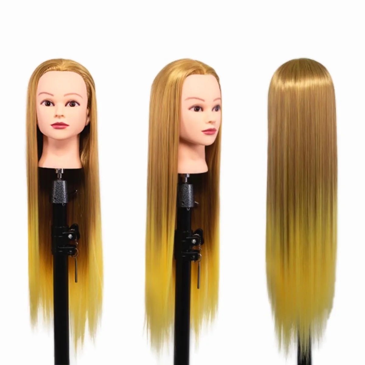 - Longitud de cabello: 60 cm que facilitan el trabajo con largos medios y largos, permitiendo realizar recogidos, trenzas y cortes graduados.