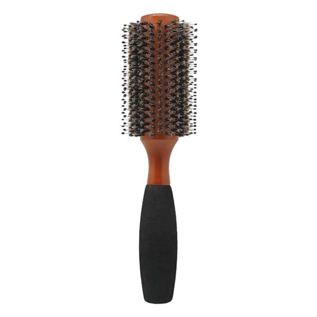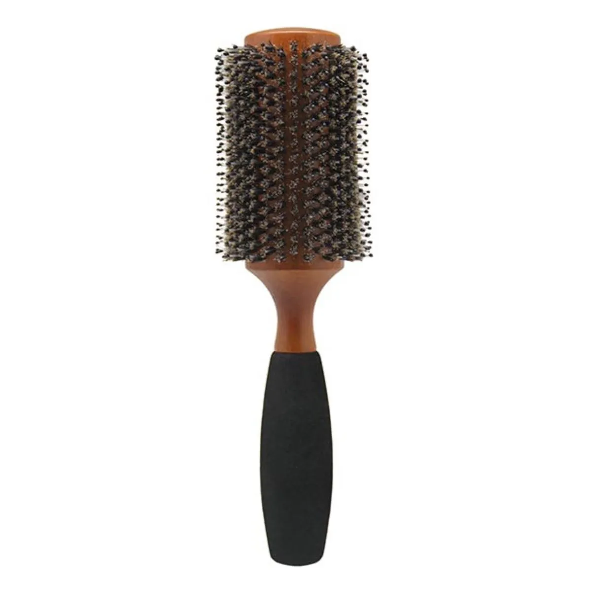 Cepillo redondo de madera para peinar y dar volumen con suavidad. Cerdas resistentes que cuidan el cabello, mango ergonómico y acabado natural. Ideal para uso diario y secado con secador.