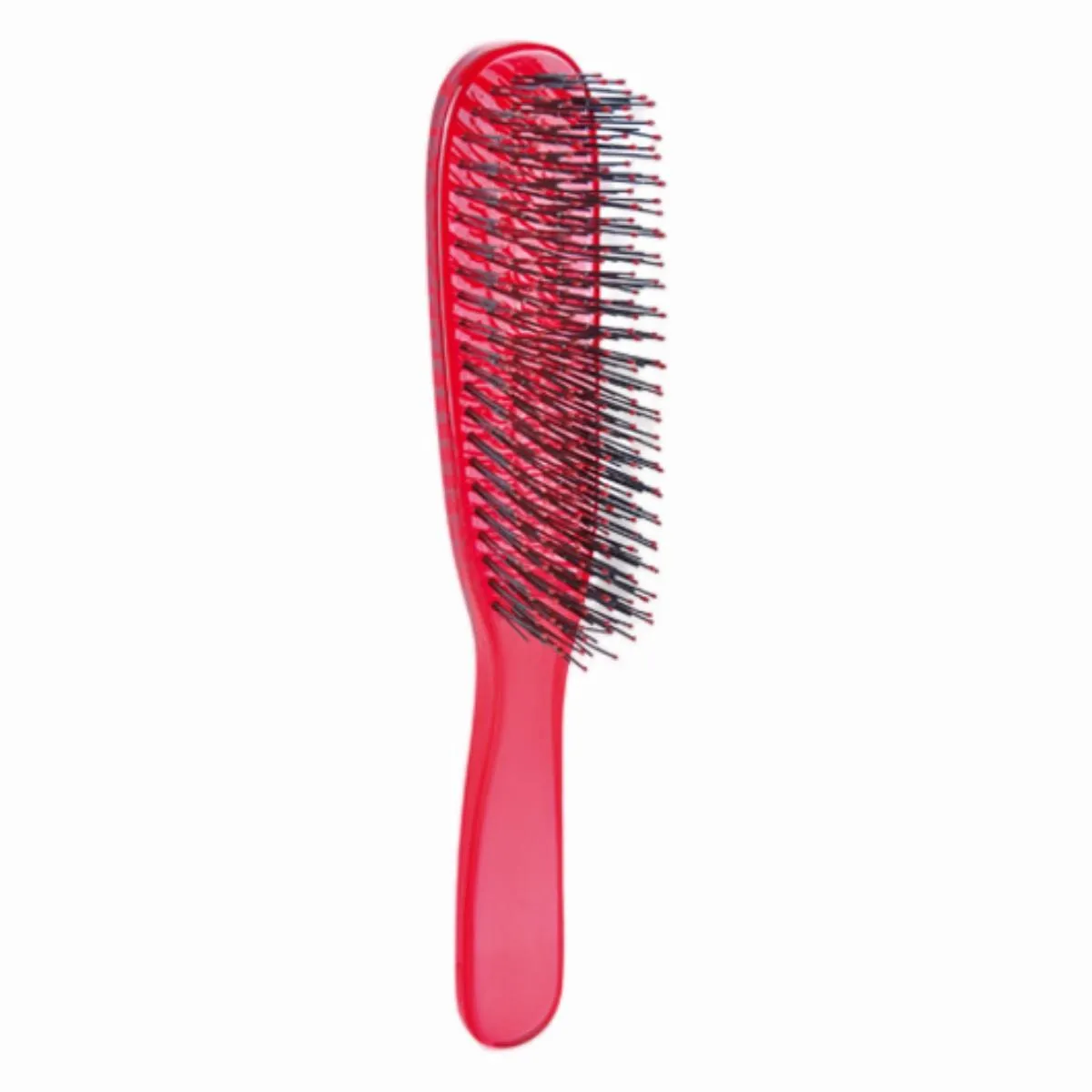 Cepillo plano transparente ideal para peinados lisos y pulidos. Cerdas suaves y resistentes, mango ergonómico y ligero que facilita el manejo. Acabado elegante, perfecto para uso diario y salón.