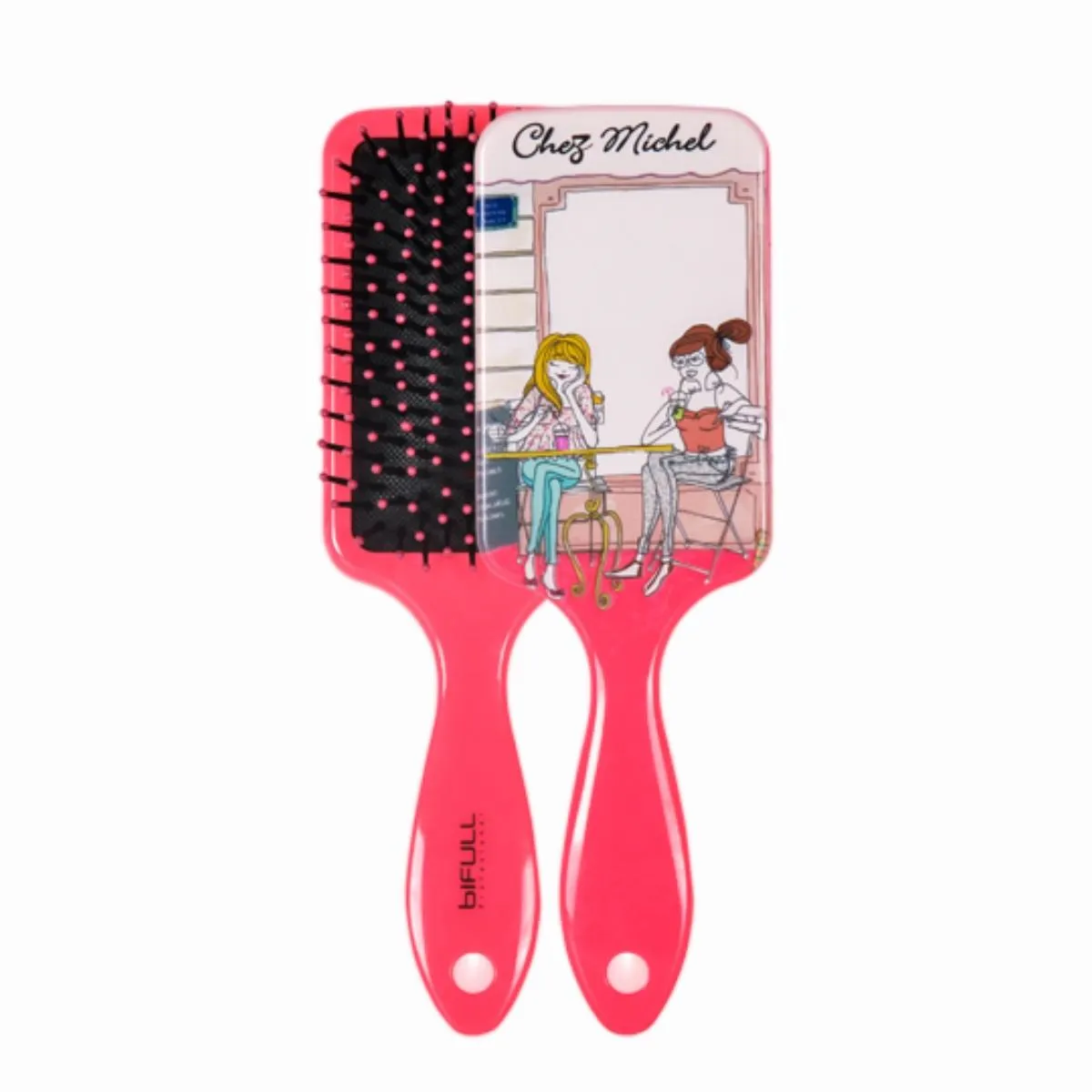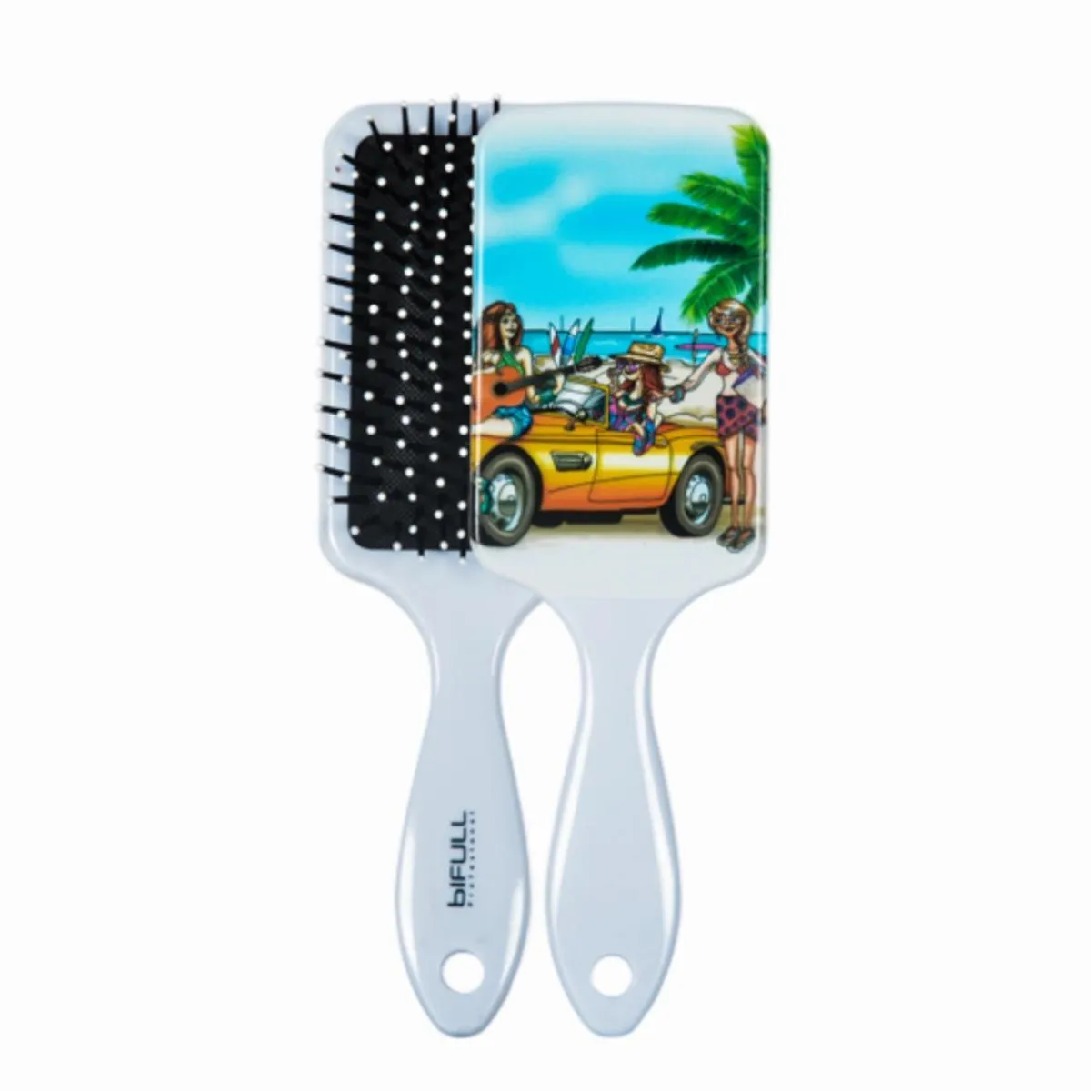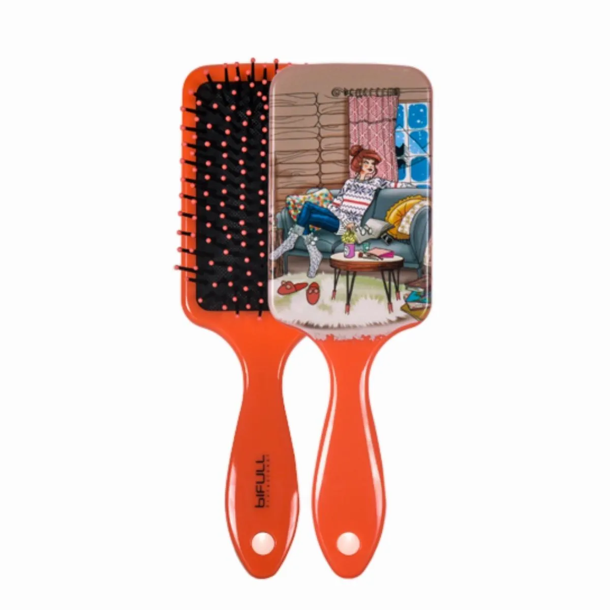 - Bifull Cepillo Raqueta Top con almohadilla flexible: la base acolchada se adapta al contorno de la cabeza para repartir la presión y minimizar tirones, proporcionando un peinado más cómodo y respetuoso con el cuero cabelludo.