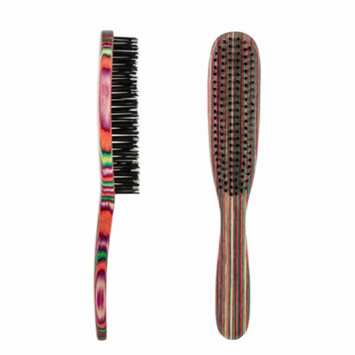 Descubre un cepillo pensado para quienes buscan una herramienta resistente, cómoda y con un acabado de calidad. Con una estética de madera rayada que añade elegancia al tocador, este cepillo combina funcionalidad y durabilidad sin prometer resultados milagrosos: ofrece un manejo suave, desenredado controlado y tacto agradable tanto en cabello seco como húmedo.