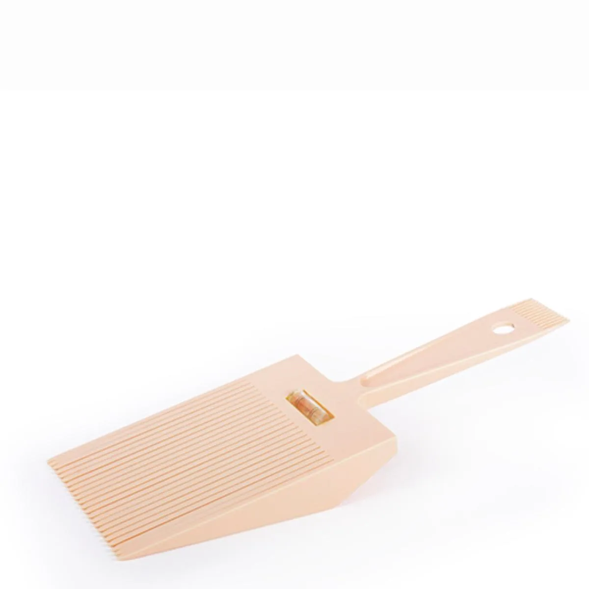 Peine con nivel integrado para alisar y medir con precisión. Diseño ligero, resistente y cómodo; ideal para uso profesional y doméstico.