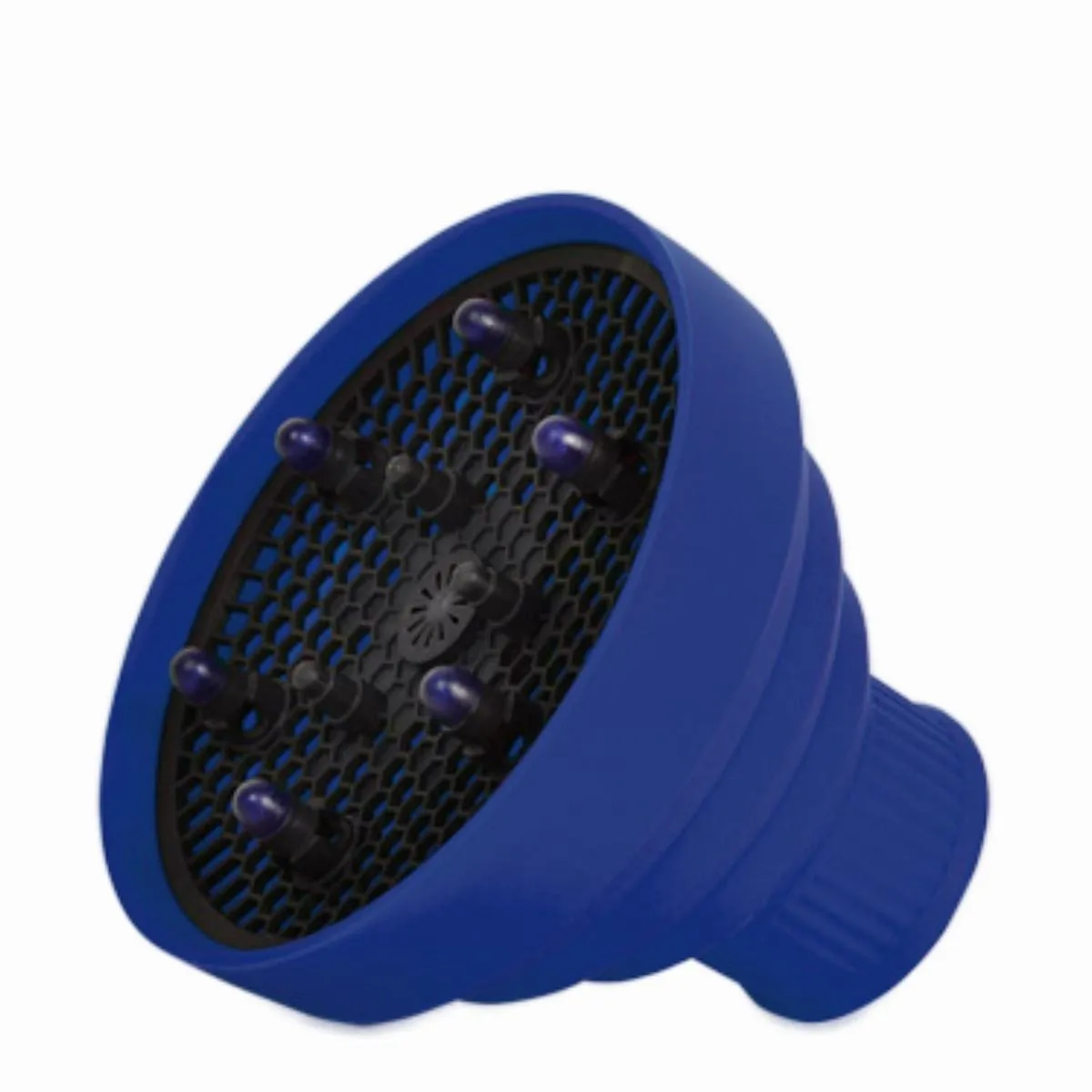Difusor plegable, ligero y compacto para secadores. Distribuye el aire uniformemente, realza rizos y volumen sin dañarlos. Diseño práctico para viajes y almacenamiento fácil.