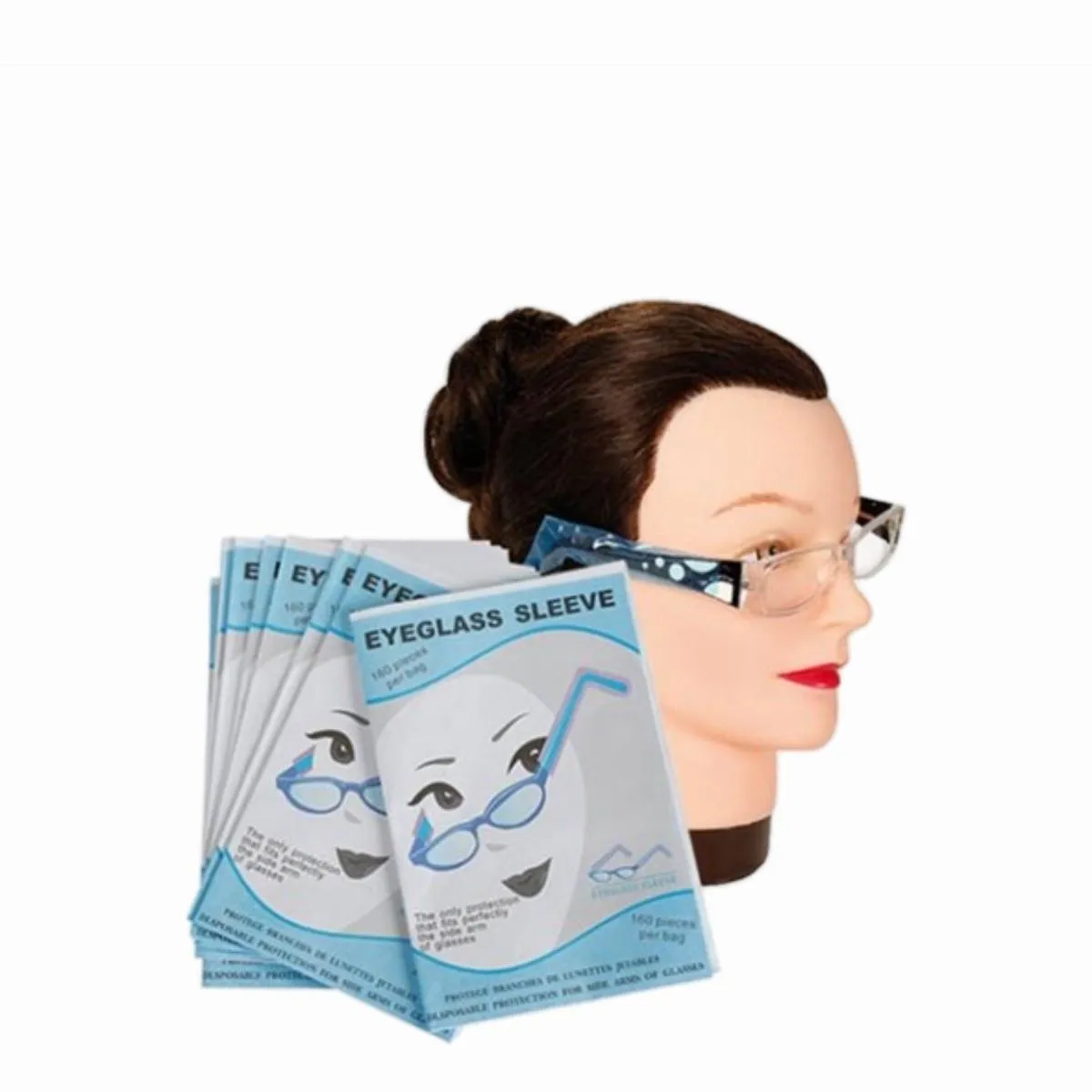 Fundas desechables para gafas, pack de 150 unidades. Protegen lentes y superficies, son higiénicas, ligeras y fáciles de colocar. Ideal para salones, centros médicos y uso profesional.