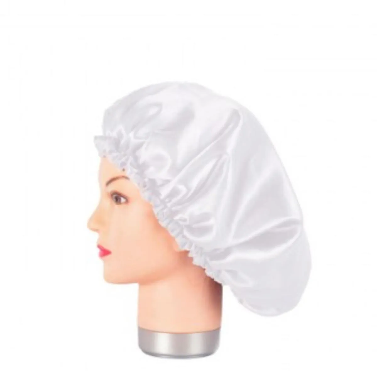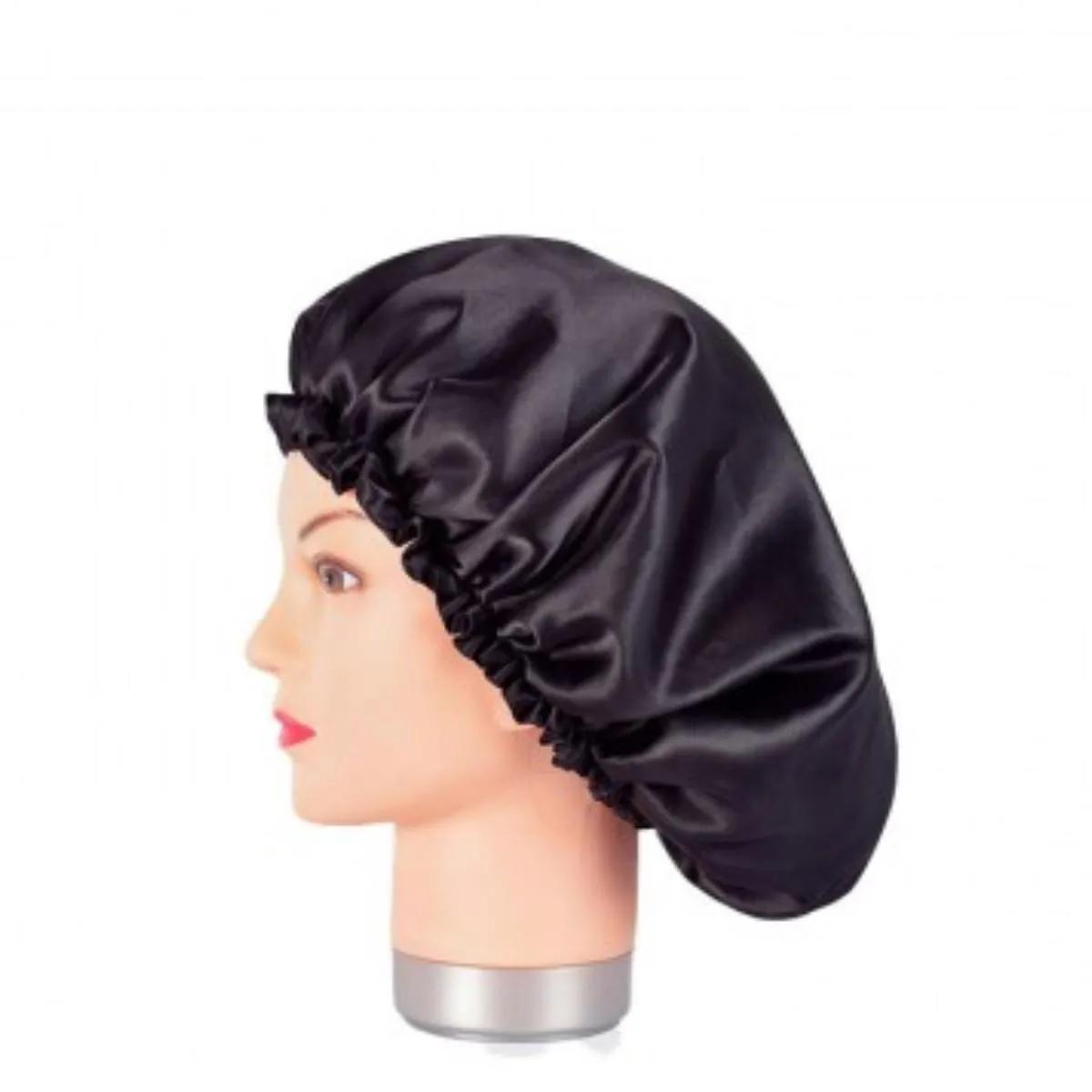 El satén actúa como una barrera de baja fricción entre el cabello y las superficies. Esto significa menos tirones al moverse, menos puntas abiertas por fricción y una sensación general de mayor suavidad. El diseño incorpora un elástico anatómico que se adapta a distintos contornos sin apretar, y una confección pensada para distribuir el cabello con naturalidad dentro del gorro, evitando pliegues que alteren el peinado.