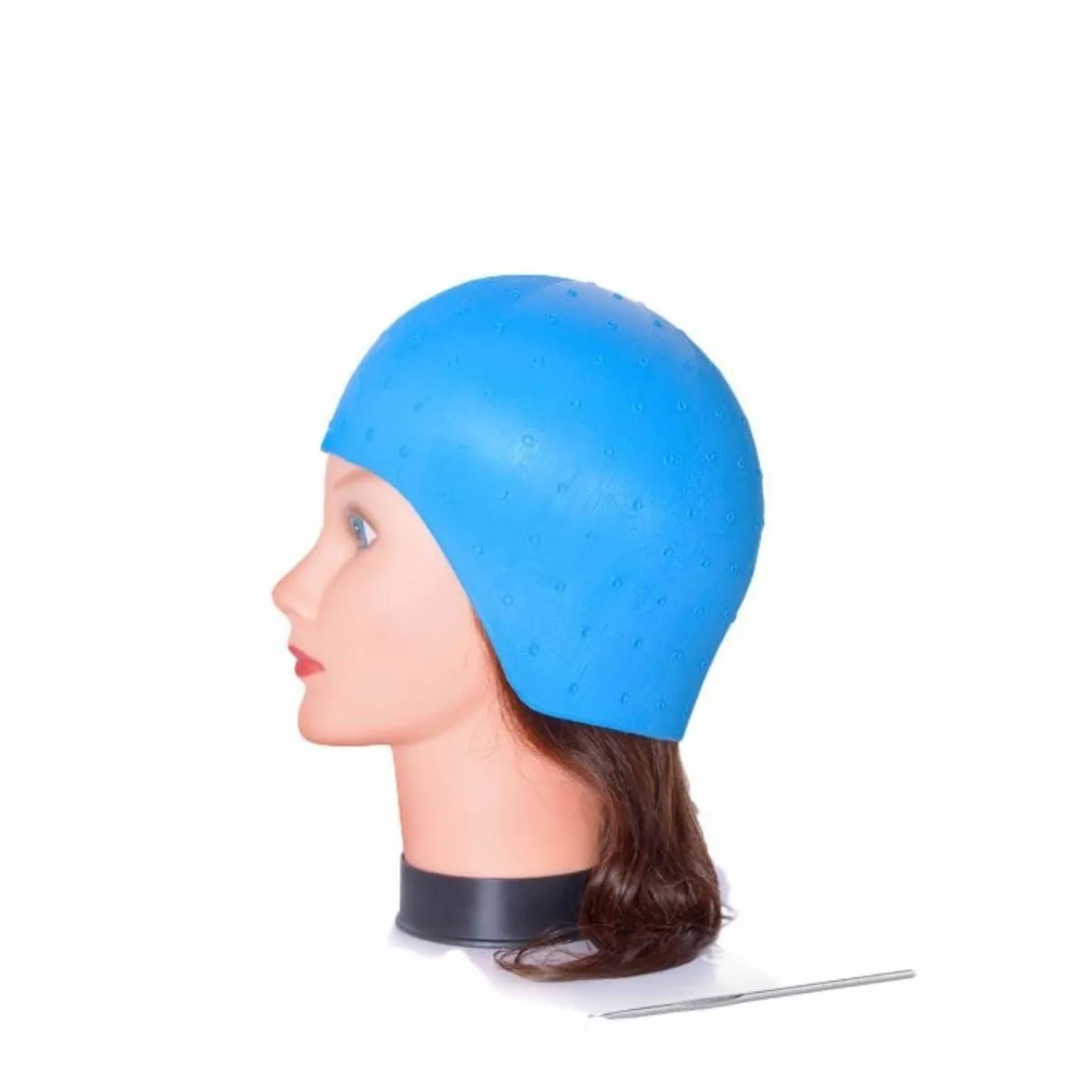 Colocar y trabajar con este gorro es intuitivo. La silicona suave se ajusta sin apretar, manteniendo la cabeza estable durante la extracción de mechones. Los puntos perforados son fáciles de identificar y permiten extraer cabello con gancho o aguja sin dañar la fibra capilar. Tras el uso, su limpieza es rápida: basta enjuagar con agua y un jabón neutro y dejar secar al aire. Para profesionales, su resistencia a lavados frecuentes garantiza una larga vida útil.
