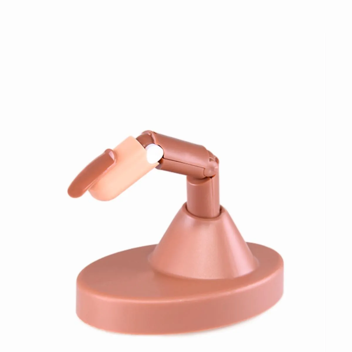 - Articulación ajustable: Permite mover y fijar el dedo en distintas posiciones, simulando diferentes ángulos de trabajo y facilitando el acceso a todas las zonas de la uña.