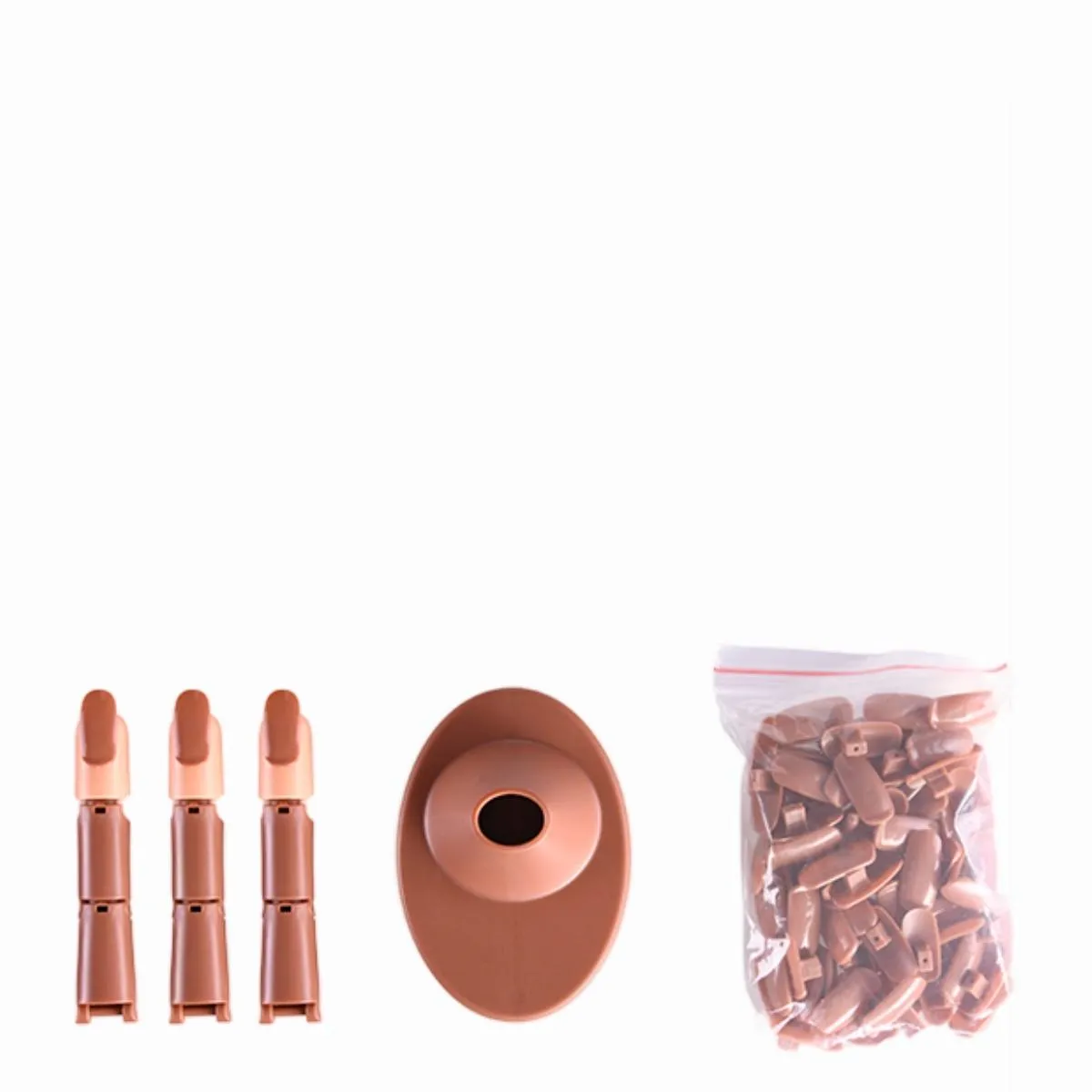 - Realismo en la forma y tamaño: La uña y el lecho ungueal reproducen proporciones naturales, lo que ayuda a desarrollar control sobre el limado, la colocación de tips y decoraciones.