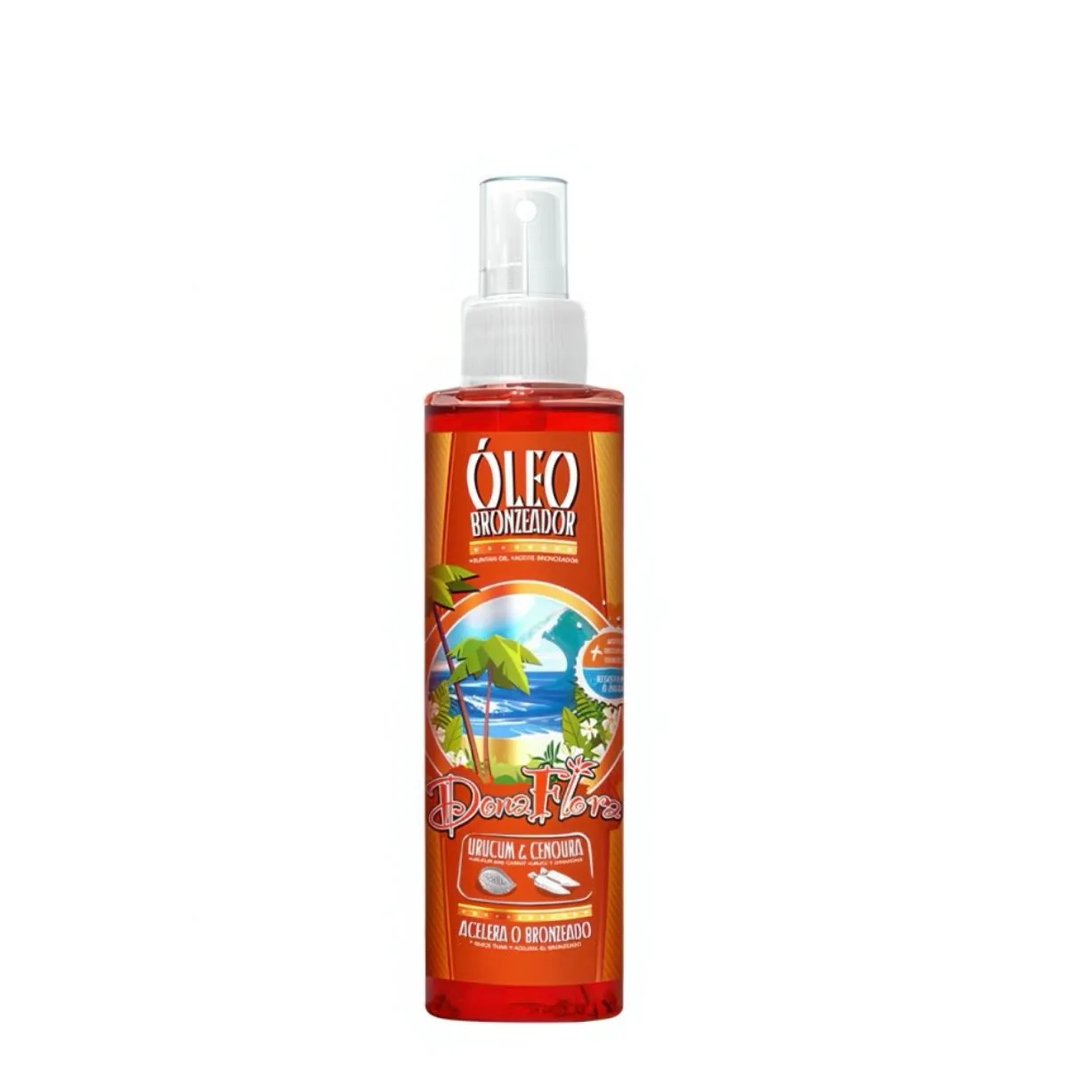- Dona Flora Aceite Bronzeador De Urucum Y Zanahoria 200ml se utiliza como producto cosmético complementario; para exposición solar prolongada, aplicar un protector solar apropiado además del aceite.