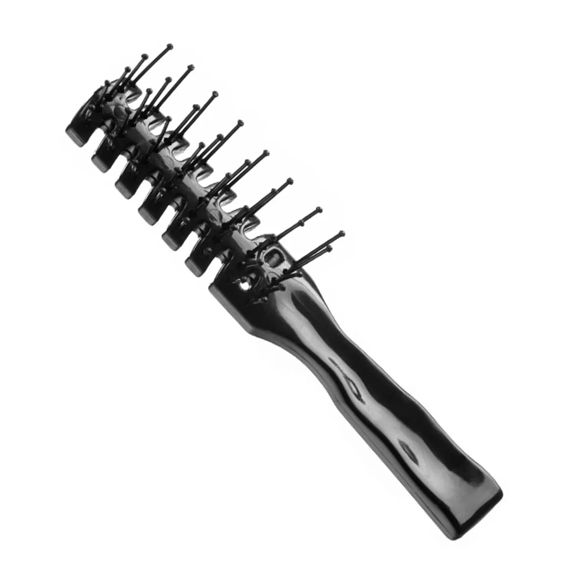 Su estructura esqueleto permite una mejor circulación del aire, lo que acelera el proceso de secado cuando se usa junto al secador y reduce la exposición prolongada al calor sobre el cabello. La forma compacta y la distribución de las cerdas facilitan el peinado en secciones pequeñas y el acceso a zonas difíciles, como detrás de las orejas o la nuca.