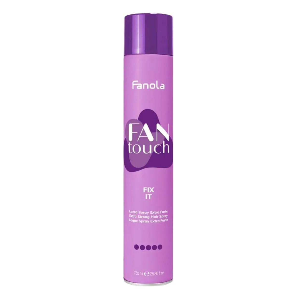 - Fanola Fantouch Laca Spray Extra Fuerte 750ml: diseño en aerosol de gran capacidad pensado para un uso prolongado.