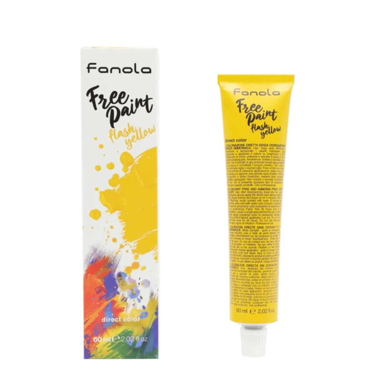 Para quienes busquen el nombre del producto resaltado en la ficha técnica, se puede encontrar en la etiqueta del envase con la denominación Fanola Free Paint Color Directo 60ml, que identifica la línea y el formato dentro de la gama de coloración directa.