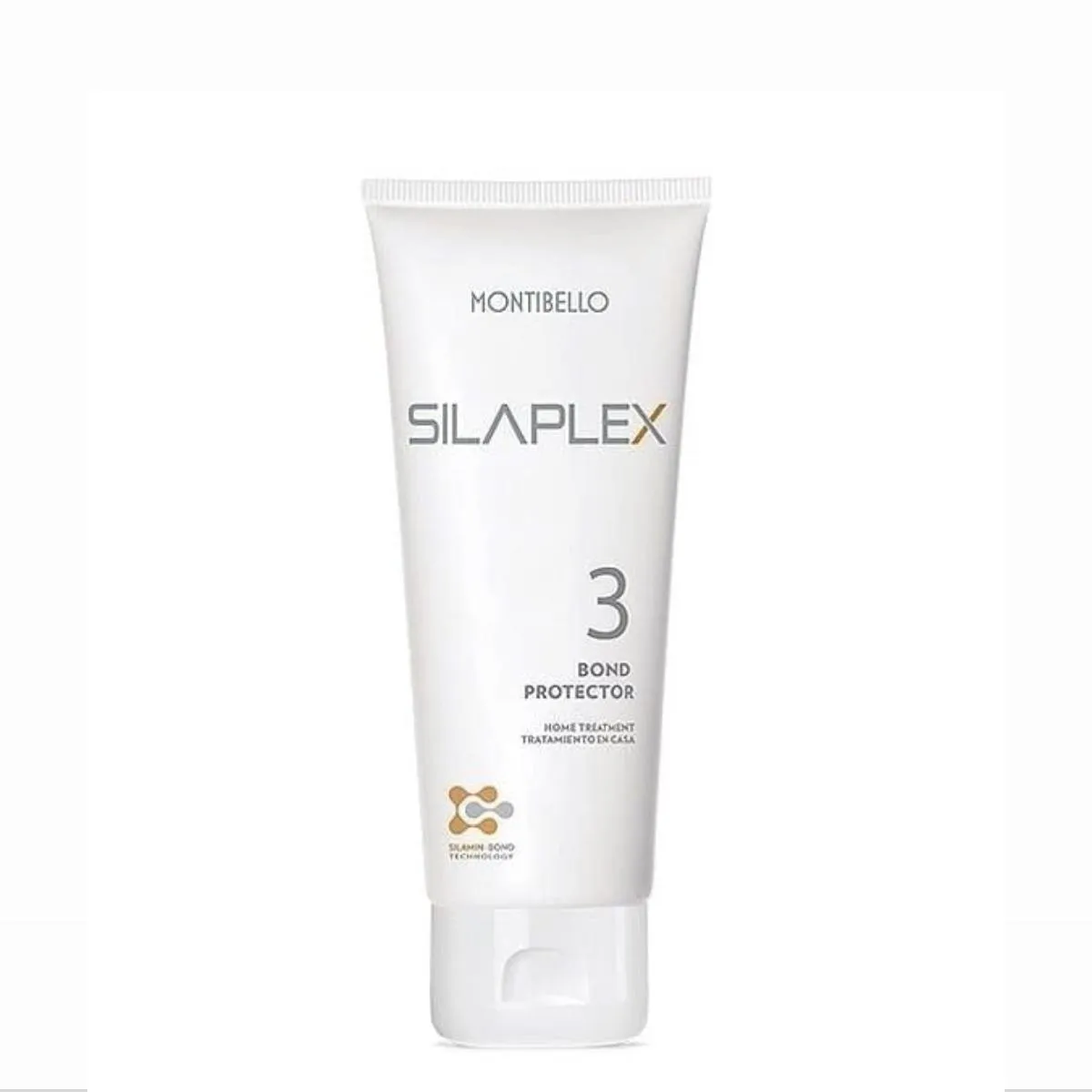 Para quienes desean reconocer el producto con facilidad en su kit profesional, la denominación aparece claramente en la etiqueta: Montibello Silaplex Bond Protector 100ml Paso 3.