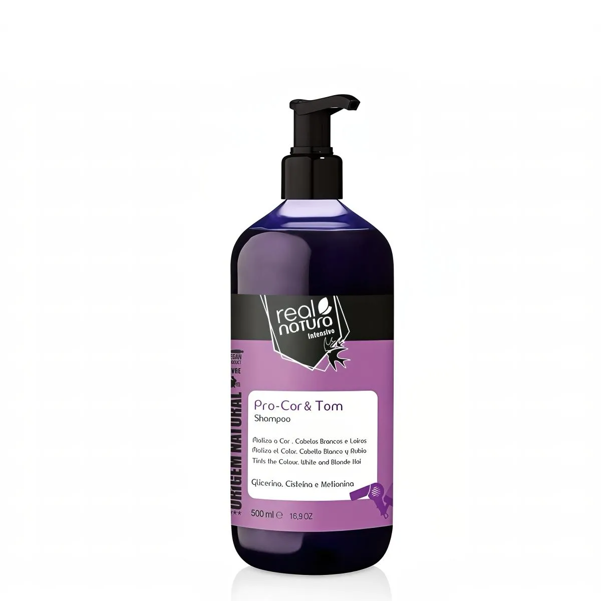 Características técnicas y beneficios destacados — Real Natura Pro-Cor E Tom Champú Sin Sal 500ml