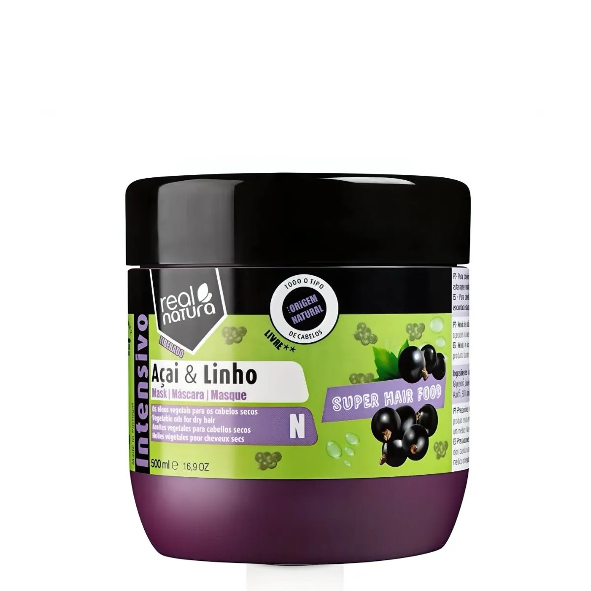 Descubre los beneficios y características de Real Natura Super Hair Food Acai e Linho Mascara 500ml