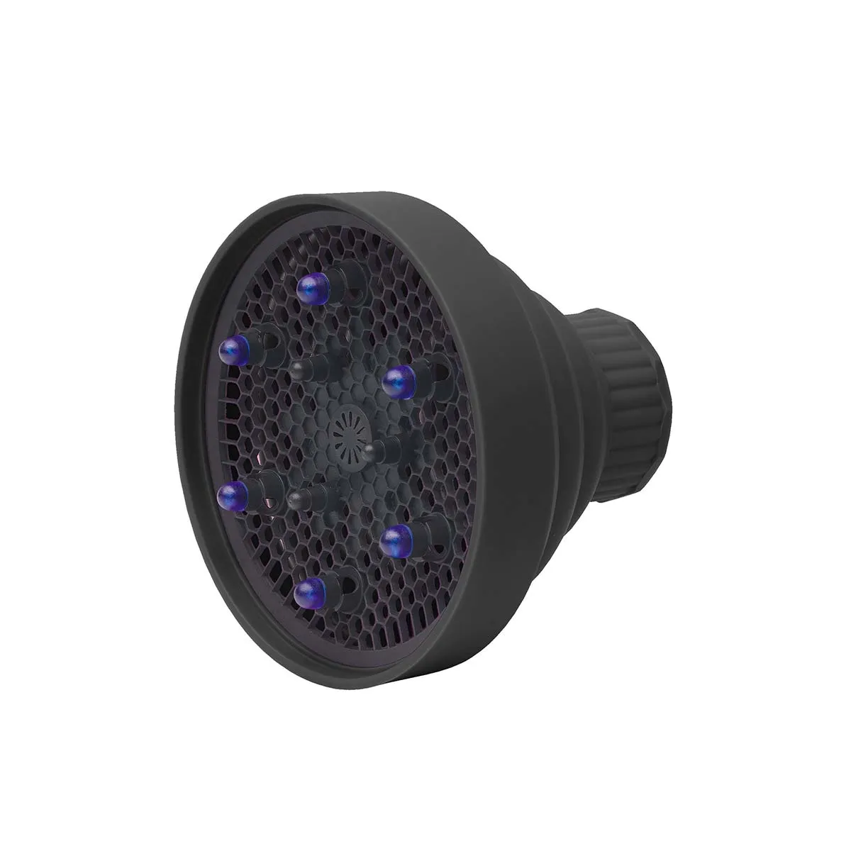 Difunde el aire de forma uniforme para potenciar volumen y cuidar el cabello. Plegable, ligera y fácil de guardar; silicona flexible y ajuste universal para la mayoría de secadores.