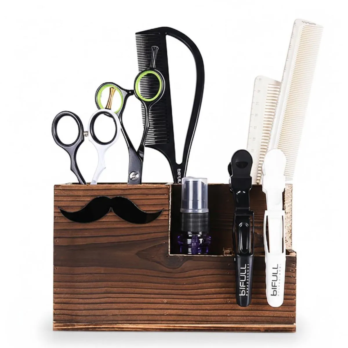 Organiza y protege tijeras y herramientas de barbería con un soporte resistente y compacto. Acceso rápido, diseño elegante y materiales duraderos para uso profesional o doméstico.
